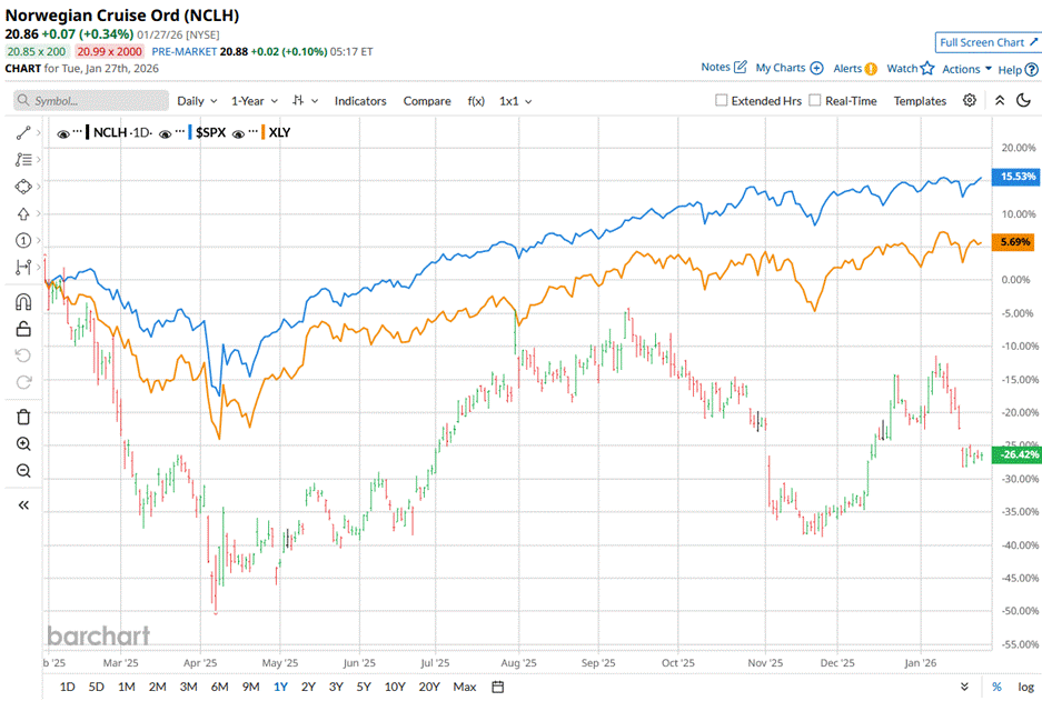 NCLH stock has lagged behind the broader market over the past year and in 2026. NCLH stock has declined 21% over the past 52 weeks and has fallen 6.5% on a year-to-date (YTD) basis. In comparison, the S&P 500 Index ($SPX) has returned 16.1% over the past year and rose 1.9% in 2026.