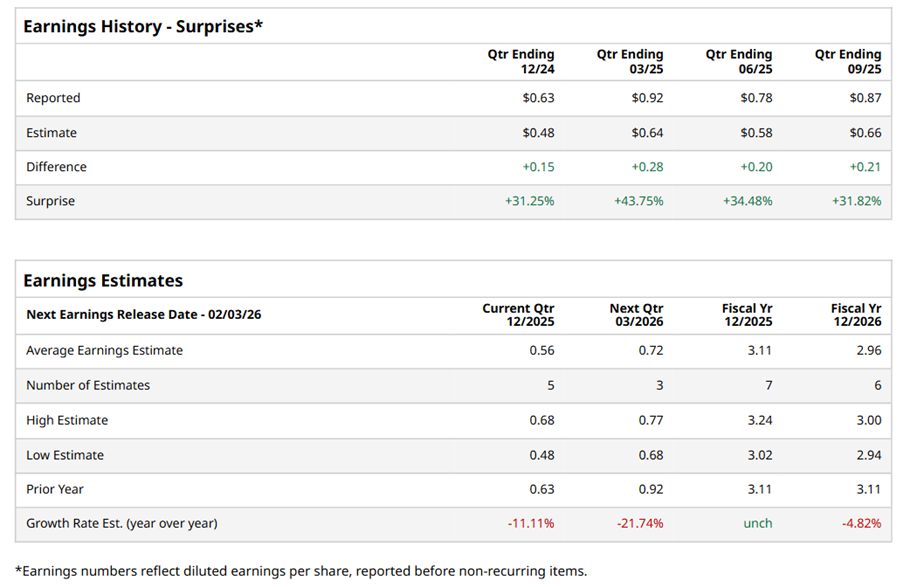 Pfizer Inc. (PFE), headquartered in New York, discovers, develops, manufactures, markets, distributes, and sells biopharmaceutical products. With a market cap of $143.2 billion, the company offers medicines, vaccines, medical devices, and consumer healthcare products for oncology, inflammation, cardiovascular, and other therapeutic areas. The pharmaceutical giant is expected to announce its fiscal fourth-quarter earnings for 2025 before the market opens on Tuesday, Feb. 3.
