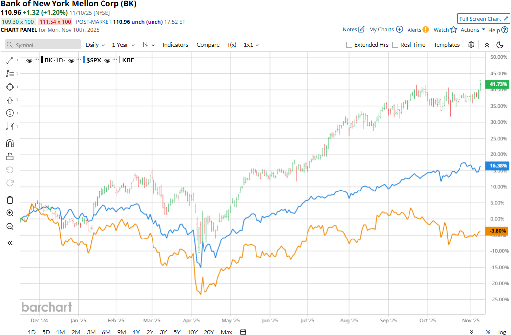 The banking giant has significantly outpaced the broader market over the past year. BNY stock has soared 44% over the past 52 weeks and 44.4% on a YTD basis, compared to the S&P 500 Index’s ($SPX14% gains over the past year and 16.2% returns on a YTD basis.