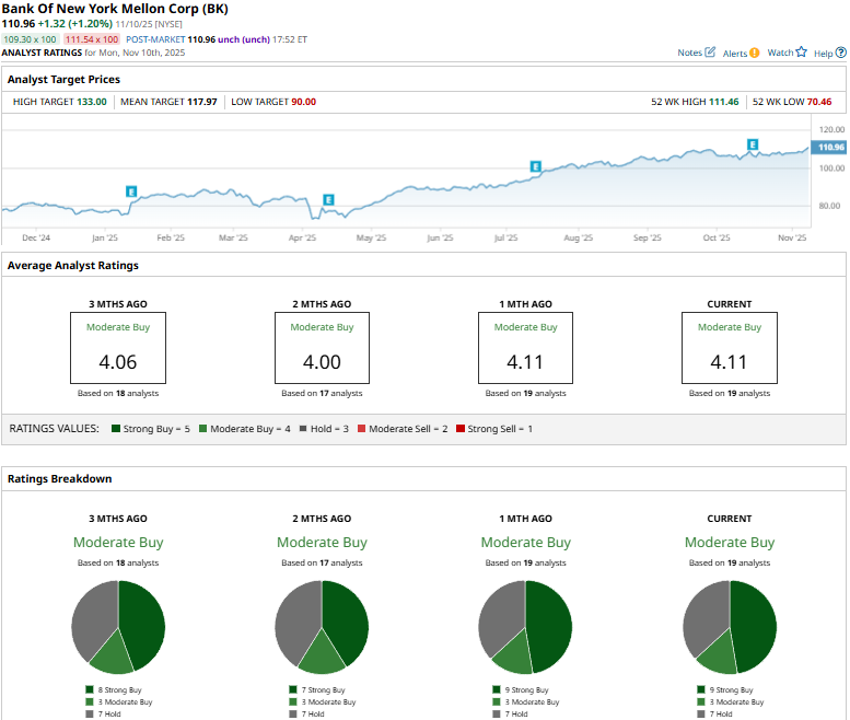 On Oct. 20, TD Cowen analyst Steven Alexopoulos maintained a “Buy” rating on BNY and raised the price target from $130 to $133.