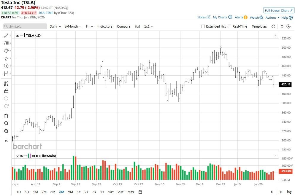 Following the post-earnings decline, Tesla stock is down some 14% versus its 52-week high.
