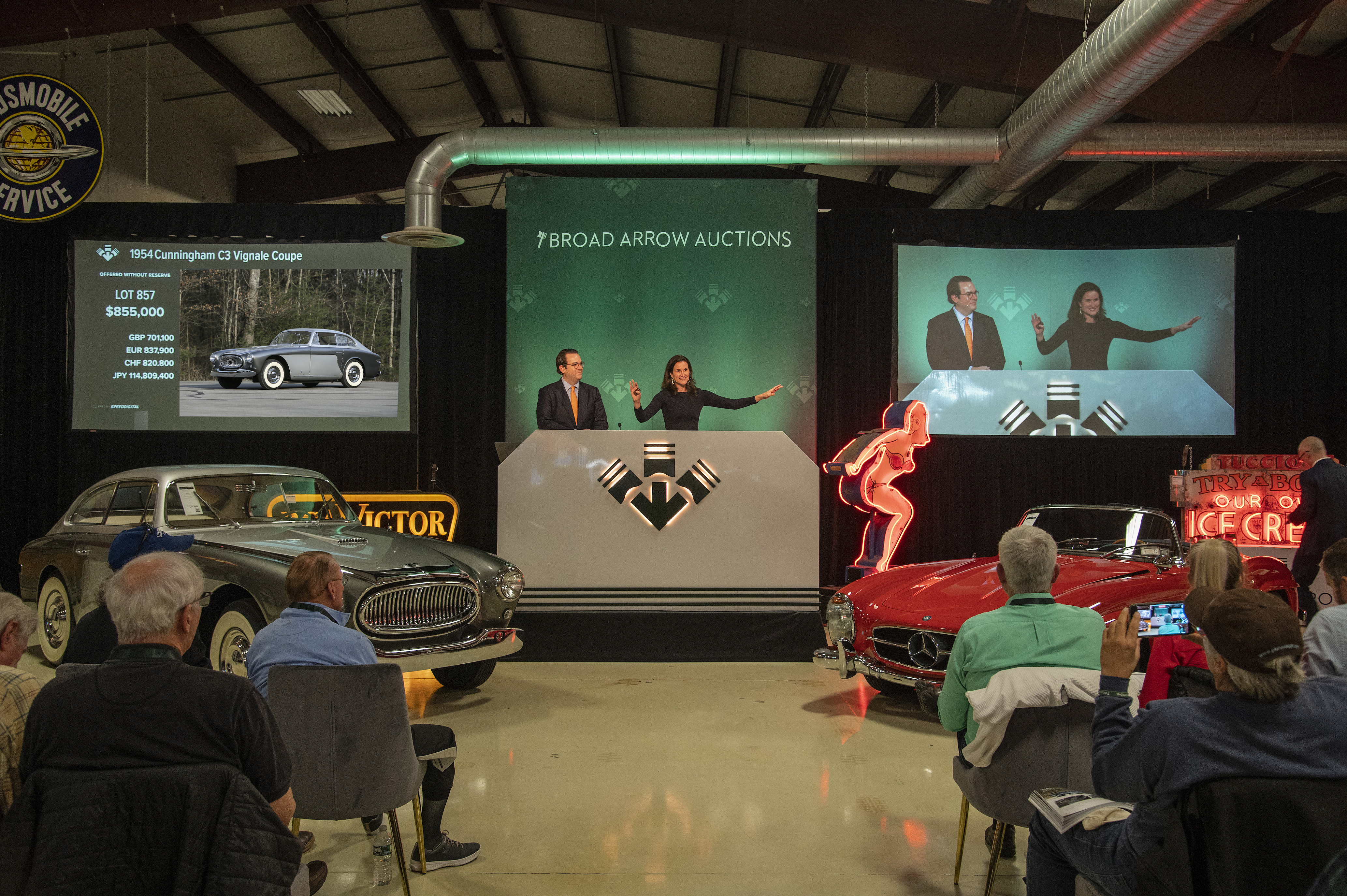“This was a great fall weekend for car enthusiasts and our team in Jim’s hometown of Gloversville, NY,” said Kenneth Ahn, President of Hagerty Marketplace. “The diversity and quality of cars on offer brought significant bidder interest and it was fantastic to see so many familiar faces from across the industry. We are grateful to Jim for entrusting Broad Arrow Auctions with the sale of his beloved group of cars and automobilia, carefully handpicked over the last 40 years. We look forward to continuing the momentum in West Palm Beach next month.”