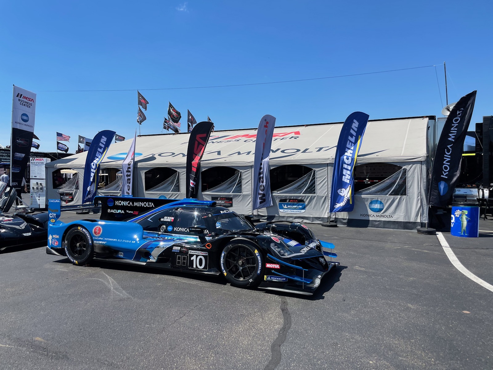 The prime location in the middle of the action assists Konica Minolta in supporting IMSA partners and stakeholders with business-to-business opportunities. New for 2023, the Konica Minolta Business Center can now run fully “off the grid” thanks to rooftop solar panels and battery storage units installed prior to this season. The system also provides Level 2 electric vehicle (EV) and plug-in hybrid vehicle (PHEV) charging for IMSA OEM partners to use for at-track product launches, VIP rides, media events and more.