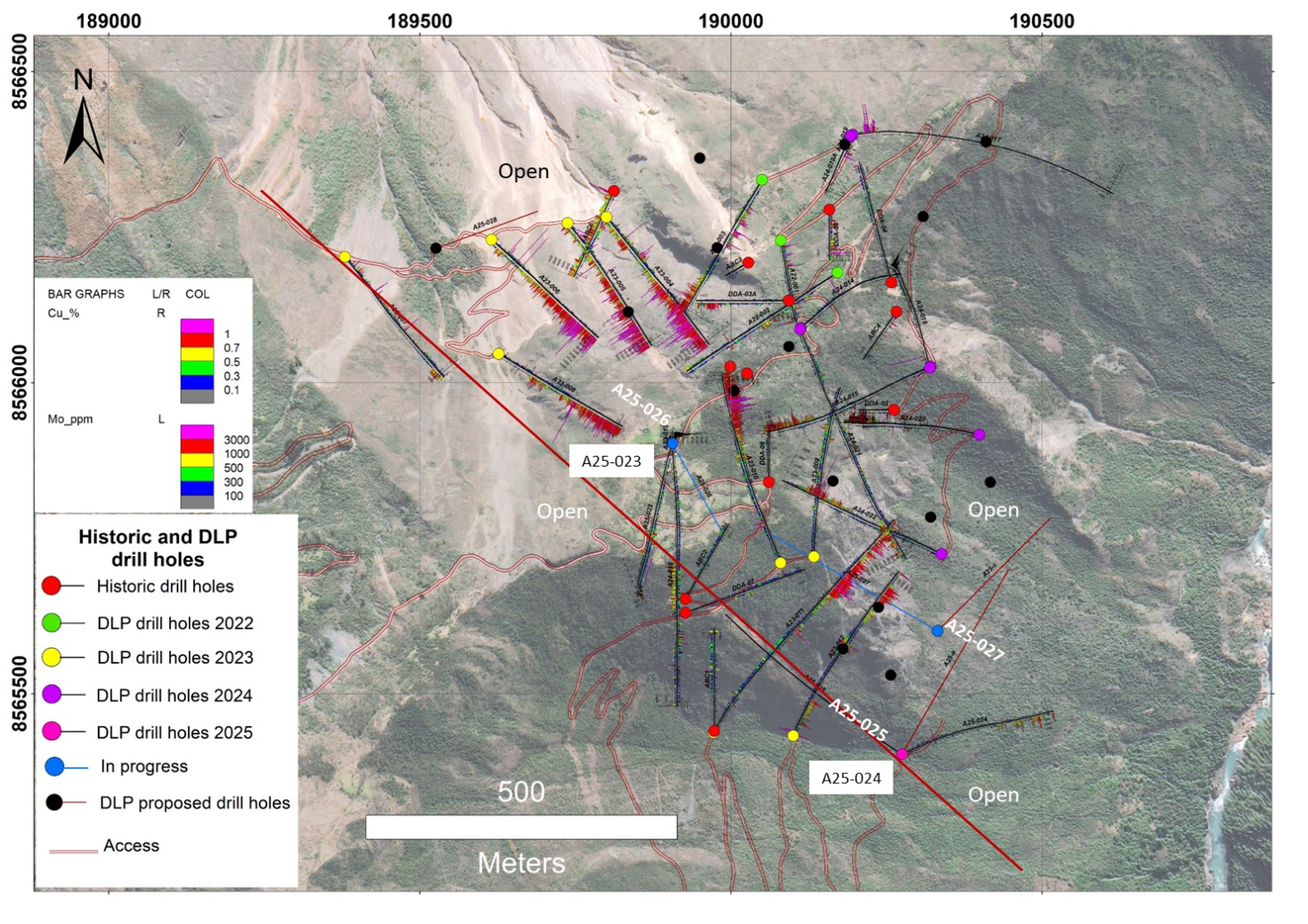 Cranbrook, British Columbia--(Newsfile Corp. - October 22, 2025) - DLP Resources Inc. (TSXV: DLP) (OTCQB: DLPRF) (FSE: J8C) ("DLP" or the "Company") announces receipt of complete drill results for drillholes A25-023 and A25-024 on the Aurora porphyry copper-molybdenum-silver project in southern Peru. (Figure 1).