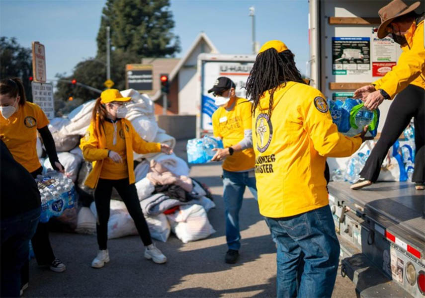 “We collected donations of food and supplies and filled our entire SUV with food, water, toiletries, and baby supplies,” said a third Volunteer Minister who was providing relief nearby. “We then brought the supplies door-to-door in Pasadena and Altadena neighborhoods.